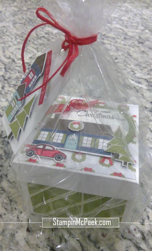 This is the first time I made a box for a gift and I have to say “I am hooked!” Recently, Bath and Body Works had their annual sale on 3 wick candles and I went crazy!!! The sale was too good to pass – they make great easy gifts but there was something missing….. PRESENTATION! So I was off and Trimming the Town fit the need perfectly!