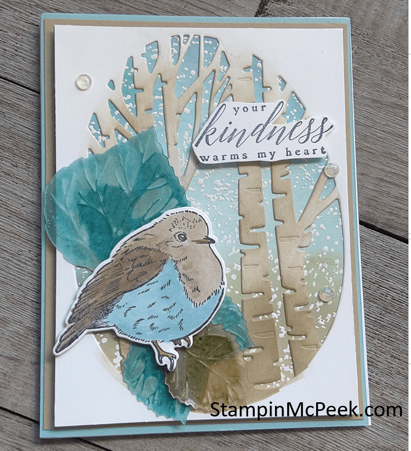 I have seen so many cute cards using this fluffy bird from the “Perched in a Tree” stamp set so picking it for the Fall Blog Hop was a no brainer!